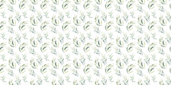 Zielona fototapeta przykrywa wzór gałązek. Gałązki są pomalowane akwarelą.