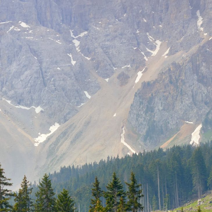 Góry z drzewami i chmurami w różnych materiałach