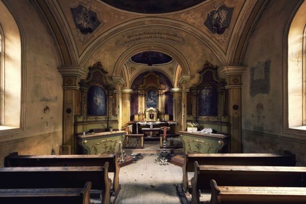 Mała, ale wyjątkowa kaplica w Dolomitach. Ten piękny dom modlitwy jest w stanie upadku od około 15 lat, otoczony przez wysokie góry.