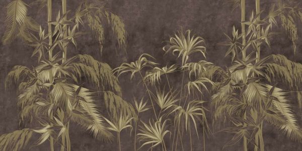 Ciemne i jasne tony mieszają się w tym stylowym projekcie, podkreślając elegancję liści palmowych na głębokim, dymnym tle. Wydaje się to jak taniec cieni i światła, co tworzy kojącą atmosferę.