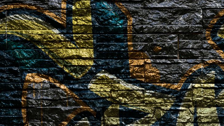 Graffiti na czarnych kamieniach do trudnych pomieszczeń. Ze względu na czarne tło, tapeta ta sprawia, że każdy pokój staje się trudny.