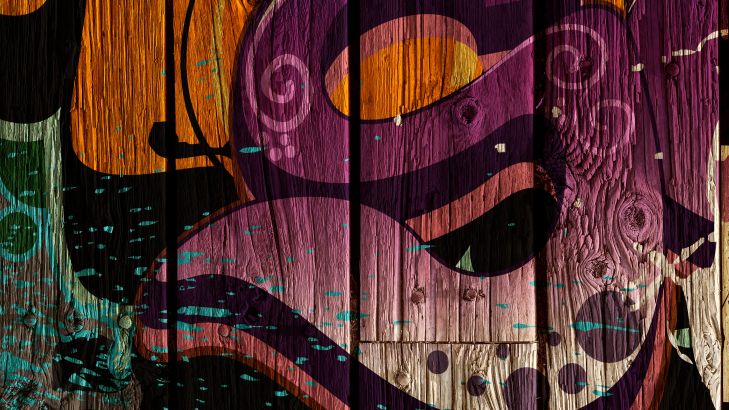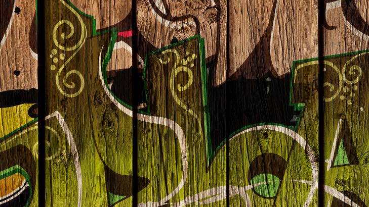 Fajne graffiti na drewnie. Czy lubisz sztukę współczesną? W takim razie ta tapeta z graffiti to prawdziwy must have dla Twojego domu.