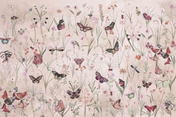 Este diseño es una oda a la belleza de la naturaleza y la delicada armonía entre flora y fauna. Una exuberante colección de flores en diferentes fases de floración está sutilmente entrelazada con mariposas, libélulas y otros elegantes insectos. Los detalles botánicos son refinados, con líneas finas y transiciones suaves que enfatizan las formas naturales. La paleta de colores se compone de suaves colores pastel como el rosa claro, el verde menta, el lavanda y el marfil, que evocan la ligereza y la serenidad de una pradera de verano.