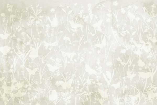 Este diseño combina sutiles elementos florales con mariposas que revolotean elegantemente, creando una imagen armoniosa que encaja perfectamente con un estilo interior tranquilo y romántico. Los suaves colores pastel, que van del rosa claro al verde apagado, dan al conjunto un aspecto aireado y acogedor. Las mariposas, con sus detalladas alas en varios tonos, aportan una dinámica divertida al patrón.