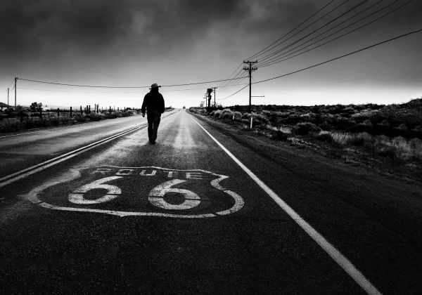 Ta stara droga leży pomiędzy pustynią, co daje fajny efekt. Zdjęcie jest czarno-białe.