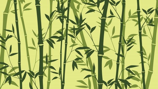 Ilustracja przedstawiająca laski bambusa w różnych kolorach zieleni.