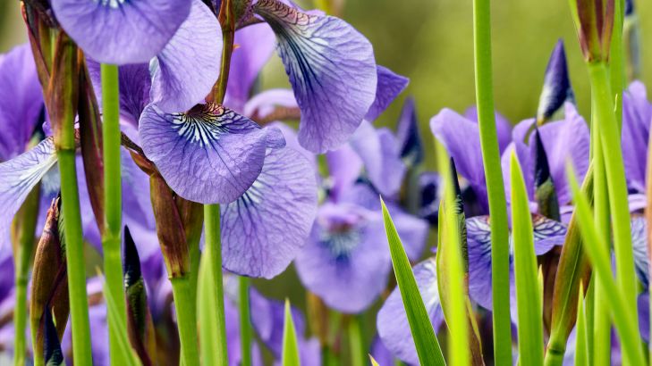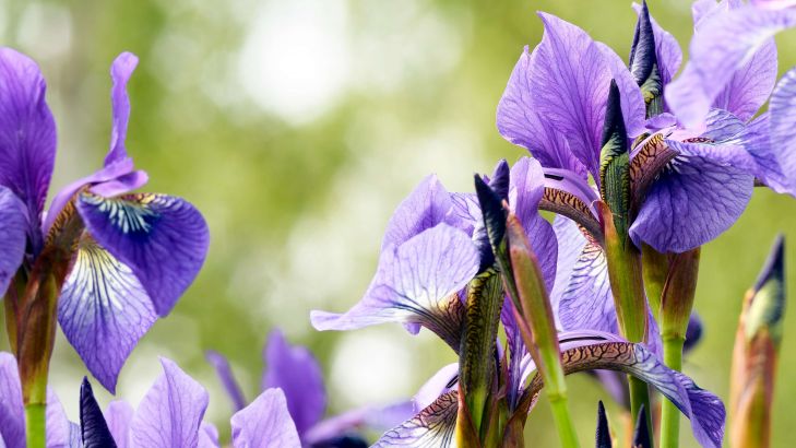 Szczegółowe fioletowe irysy z fantastycznymi głębokimi kolorami