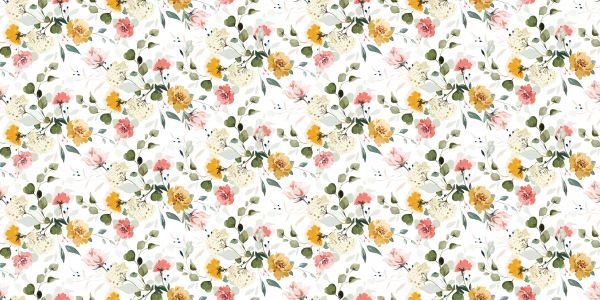 Poetycka scena kwiatów polnych w jesiennych odcieniach rozciąga się na tym projekcie, gdzie kwiaty delikatnie przechodzą z koloru piaskowego do głębokiej terakoty i bladego różu.