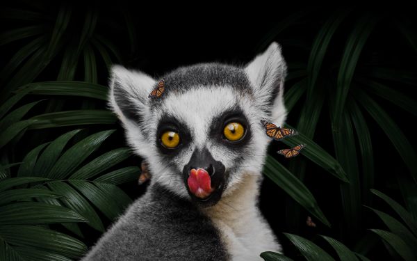 Zbliżenie na lemura pierścieniowatego w dżungli.