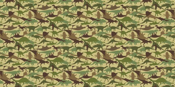 Dinozaurskie kamuflażowe tapety na jasnobrązowym tle.