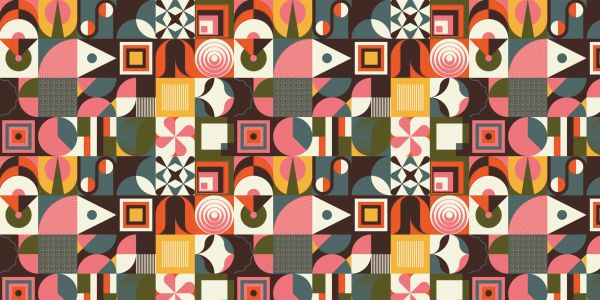 Graficzny obraz z kolorowych abstrakcyjnych kształtów. Połącz to na przykład w jadalni.