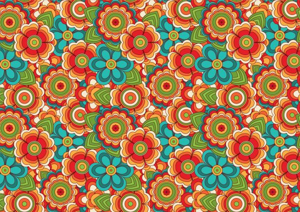 Kolorowe kwiaty retro w stylu vintage. Dzięki tej fototapecie możesz zmienić swój pokój w prawdziwy pokój z lat 70.