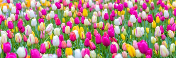 Kolorowe tulipany w polu kwiatów. Połącz tę fototapetę w swoim domu i stwórz jeszcze większą atmosferę.