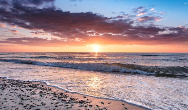 Kolorowy ocean na plaży o wschodzie słońca.