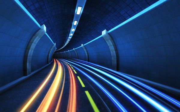 Ciemny tunel z różnymi jasnymi kolorami w środku.