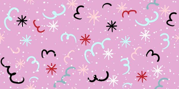 Figlarne wzory z fantazyjnymi lokami, gwiazdkami i kropkami na liliowym tle – idealne na świąteczne chwile lub do radosnych wnętrz.