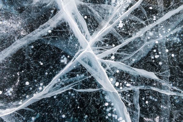 Ilustracja zamarzniętego jeziora Bajkał, tekstura lodu z abstrakcyjnymi pęknięciami.