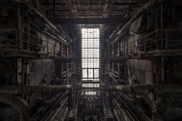 Opuszczona kotłownia na fototapecie. Wykorzystaj tę fototapetę w swoim domu i stwórz w nim industrialną atmosferę.