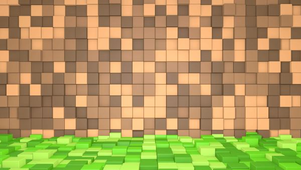 Krajobraz 3D Minecraft z brązowymi Blokami w środku. jeśli kochasz Minecraft to jest to naprawdę tapeta dla Ciebie!