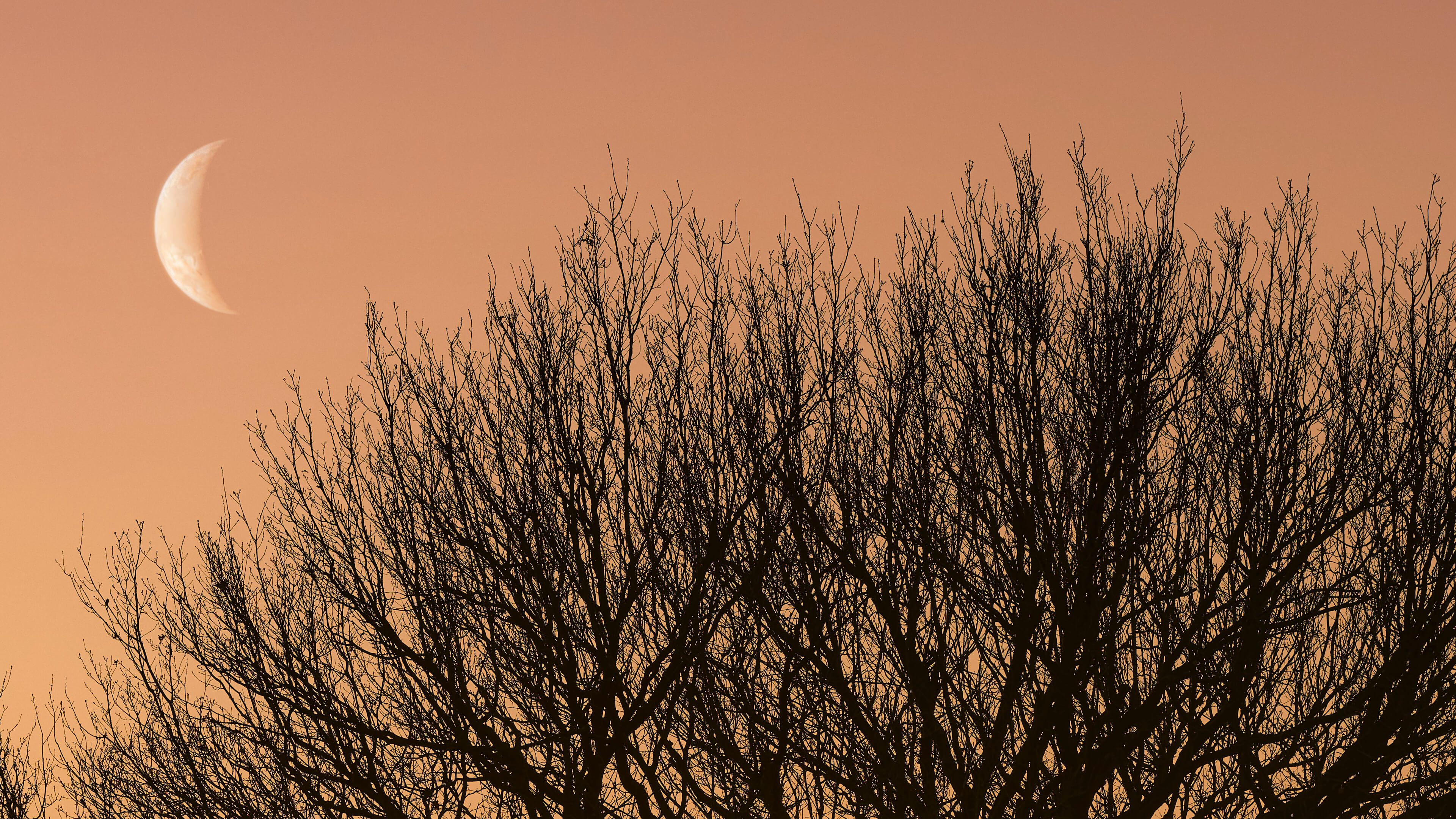 Księżyc między drzewami