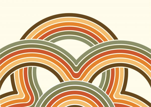 Kształty w stylu vintage w różnych kolorach na fototapecie. Umieść tę fototapetę w swoim domu i przywróć lata 70.