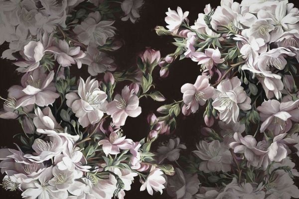 To wspaniały projekt uchwyca piękno kwiatów wiśni w pełnym rozkwicie, z wyrafinowaną równowagą między delikatnymi pastelowymi odcieniami a głębokim, ciemnym tłem. Białe i jasnoróżowe kwiaty, otoczone subtelną zielenią, zyskują niemal trójwymiarowy wygląd, jakby wyłaniały się z ciemności. Klasyczne malarskie detale nadają temu projektowi ponadczasowy i romantyczny charakter, idealny dla tych, którzy cenią elegancję z nutą dramatu.