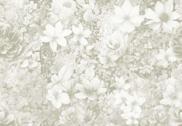 To wzorzyste tło stawia na jasny, niemal pastelowy odcień zieleni, w którym kwiaty i liście zdają się naturalnie łączyć. Jasne akcenty w kremowych tonach wzmacniają świeżość i tworzą równowagę między delikatnością a żywiołowością.