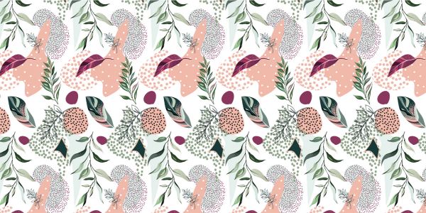 Różowa fototapeta z białym tłem i różnymi rodzajami gałęzi.