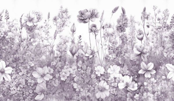 Wyszukana kwiatowa wspaniałość w subtelnych odcieniach lawendy, z ozdobnymi kwiatami i liśćmi, które wywołują łagodną, uspokajającą atmosferę. Delikatne przejścia kolorów tworzą marzycielski i elegancki całość.