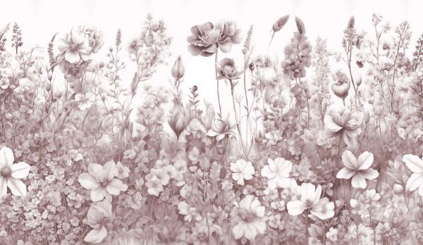 Marzycielski obrazek z ozdobnymi kwiatami i liśćmi, wykonany w delikatnych odcieniach różu. Subtelne odcienie i płynne linie nadają całości poetycki i lekki wygląd, jakby kwiaty tańczyły na wietrze. Ten projekt emanuje ciepłem i delikatnością, tworząc poczucie komfortu i bezpieczeństwa.