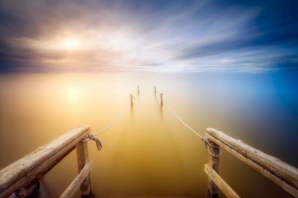 La escalera, czyli schody. Schody te znikają we mgle, co daje tajemniczy efekt.