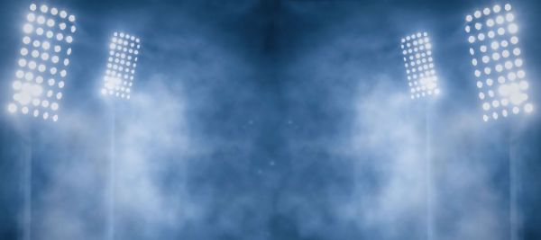 Światła stadionu z mglistym pierwszym planem.