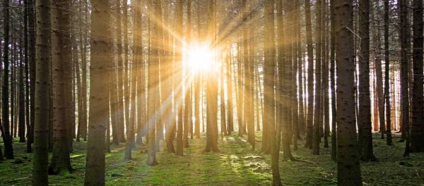 Las sosnowy z blaskiem słońca