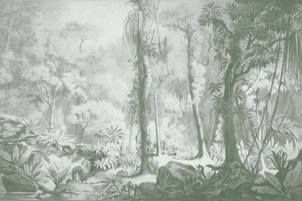 Ta energetyczna wersja w błyszczących odcieniach zieleni uchwyca istotę tropikalnego lasu deszczowego pełnego życia i koloru. Jasne liście palm i paproci przeplatają się z lianami przypominającymi bluszcz, podczas gdy rozproszone światło słoneczne filtruje przez gęsty baldachim liści. Ta kombinacja tworzy poczucie głębokiego związku z naturą, prawie jakby można było poczuć wilgotne ciepło dżungli. Tropic Forest Green doskonale wpisuje się w botaniczny styl życia, w którym naturalne materiały i rośliny odgrywają centralną rolę. Pomyśl o meblach z rattanu, poduszkach z wzorami liści oraz zielonych akcentach w wazonach lub plakatach. W nowoczesnym wnętrzu ta mural może pełnić rolę mocnego akcentu, zwłaszcza gdy pozostałe ściany są neutralne, a przestrzeń wypełniona minimalistycznymi meblami. Dzięki temu projekt zyskuje pełną uwagę, nie dominując jednocześnie. Dzięki zielonym odcieniom ta dekoracja ścienna dobrze współgra z ciepłymi gatunkami drewna, takimi jak dąb czy orzech, ale także z chłodnymi materiałami, takimi jak beton i stal. Wybierz tekstylia w odcieniach ziemi – takich jak terakota, camel czy oliwkowa zieleń – aby stworzyć dodatkową głębię i jedność. Projekt zachęca do dodania prawdziwych roślin doniczkowych, co jeszcze bardziej wzmacnia tropikalną atmosferę i zapewnia zdrowe, orzeźwiające otoczenie. Krótko mówiąc, wariant Green daje każdemu pomieszczeniu świeży zastrzyk energii: idealny do słonecznego salonu, jasnej jadalni lub nawet uspokajającego ogrodu zimowego, gdzie wnętrze i zewnątrz płynnie się przenikają.