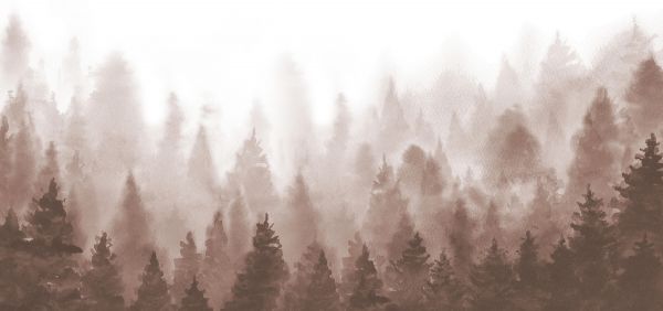 Akwarelowy las na fototapecie. Akwarelowy wygląd sprawia, że ta fototapeta nadaje się do niemal każdego pomieszczenia.
