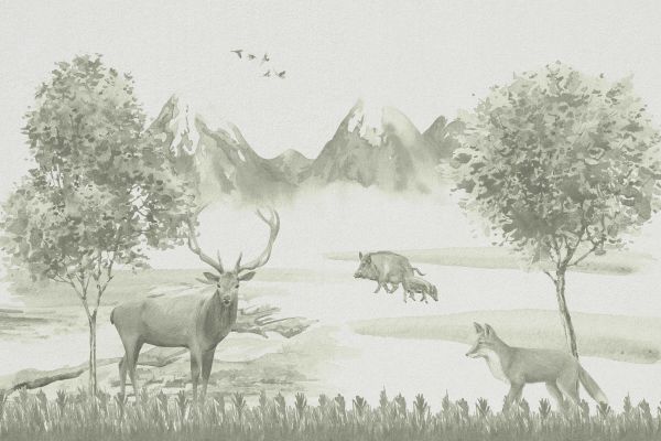 Dzikie zwierzęta w lesie szukające pożywienia podczas wiosennego spaceru w kolorze zielonym.