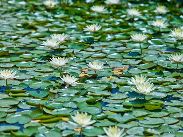 Lilie wodne w jeziorze. Połącz tę fototapetę w swoim domu, aby uzyskać jeszcze więcej atmosfery.