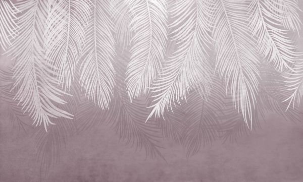 Biały wiszące liście palmowe na jasnym fioletowym tle w strukturze betonu.
