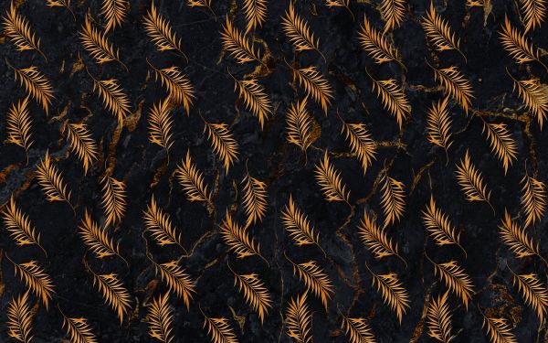 Złote liście tropikalne na czarnym marmurowym tle. Połącz tę fototapetę w swoim domu, aby uzyskać jeszcze większą atmosferę w pomieszczeniu.