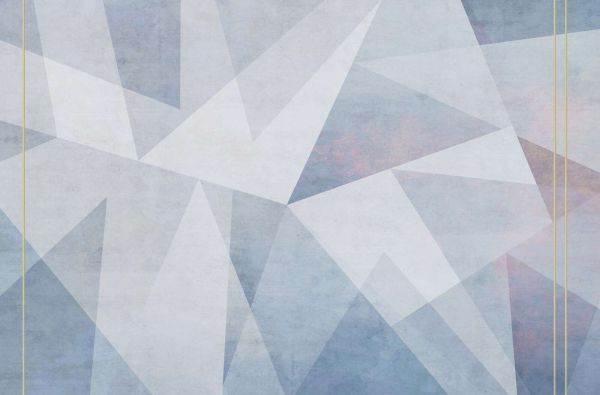 Elegancka kompozycja geometrycznych płaszczyzn w chłodnych odcieniach stanowi serce tego projektu. Przezroczyste trójkąty nakładają się na siebie w niuansach lodowego błękitu, szarawej bieli, delikatnego lila i brzoskwiniowego pastelowego różu. Linie są ostre, ale lekkie, tworząc poczucie warstwowości i ruchu bez wrażenia chaosu. Lekka struktura w tle dodaje subtelnej tekstury, dzięki czemu całość przypomina nowoczesną interpretację kryształów lodu lub abstrakcyjnych motywów witrażowych. Dwie pionowe złotobeżowe linie nadają projektowi delikatną symetrię. W skandynawskim wnętrzu ten projekt doskonale komponuje się z jasnymi drewnianymi meblami, naturalnymi tkaninami i minimalistycznymi akcesoriami. Zapewnia wizualną wyrafinowanie bez zakłócania spokoju. W nowoczesnym lub japandi wnętrzu stanowi eleganckie uzupełnienie miękkich neutralnych odcieni, ceramiki, roślin i oszczędnego wzornictwa. Idealny do sypialni, cichych miejsc pracy, salonów lub nawet przestrzeni biurowych, w których pożądana jest spokojna i wyrafinowana atmosfera. Również w strefach wellness lub hotelach designerskich ten projekt może emanować spokojną, chłodną elegancją. Połączenie geometrii i lodowych pastelowych odcieni nadaje projektowi ponadczasowy wygląd z nutą nowoczesnego minimalizmu. Kolorystyka działa jednocześnie rozjaśniająco i łagodząco, zachęcając do odpoczynku i skupienia.