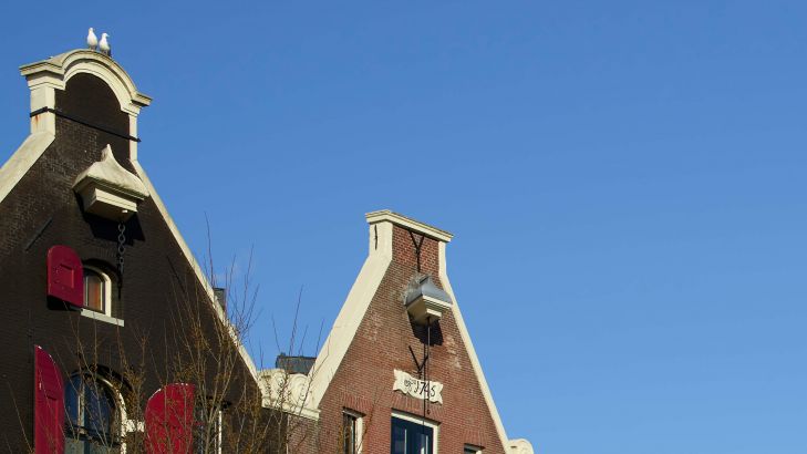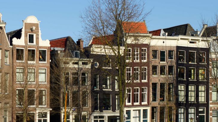 Atrakcyjne łodzie mieszkalne wzdłuż kanału Amsterdamskiego.
