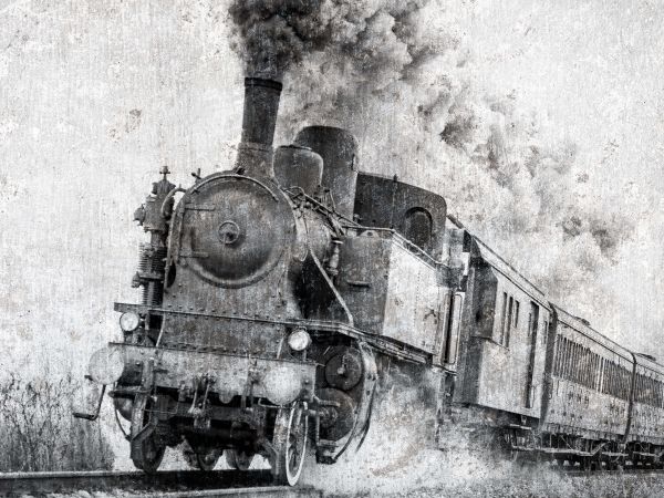 Lokomotywa parowa z zabytkową konstrukcją. Połącz tę tapetę w swoim domu i stwórz niepowtarzalną atmosferę w pomieszczeniu.