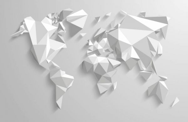 Nowoczesna fototapeta z trójwymiarową mapą świata o złożonych kształtach. Ta wytrzymała tapeta nadaje dodatkowy wymiar Twojemu wnętrzu.