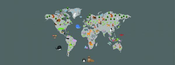 Poznaj świat i jego zwierzęta z tą zabawną i edukacyjną szarą mapą świata na tapetach.