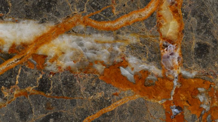 Marmur o pięknej miedzianej strukturze. Miedziana struktura nadaje tej fototapecie industrialny wygląd w Twoim domu.