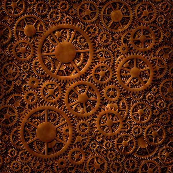 Wzór miedzianych kółek. Połącz tę fototapetę w swoim pokoju, aby uzyskać industrialny wygląd.