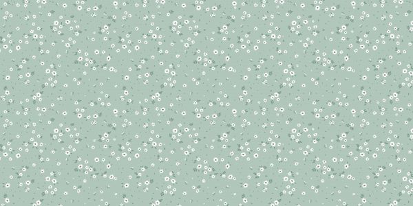 Na spokojnym miętowozielonym tle, małe białe kwiaty przynoszą subtelne ożywienie, przypominające bujny kwiatowy ogród wiosną.