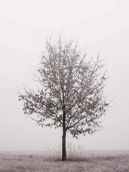 To obraz emanuje spokojem i minimalizmem. Samotne drzewo stoi dostojnie w rozległym, mglistym krajobrazie, otoczone subtelnymi odcieniami szarości. Mgła łagodzi kontury i tworzy marzycielski, niemal poetycki efekt. Nagie gałęzie drzewa elegancko kontrastują z rozproszonym tłem, co wywołuje uczucie samotności i kontemplacji.