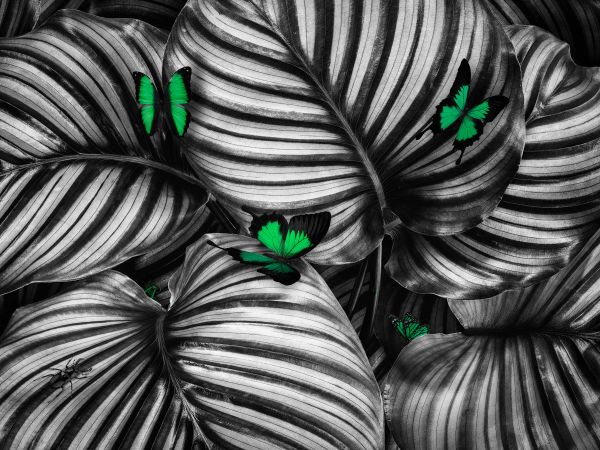 Motyle na liściach w paski