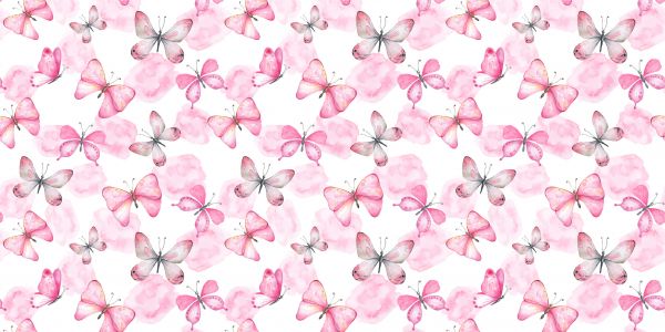 Akwarelowy wzór różowych motyli.